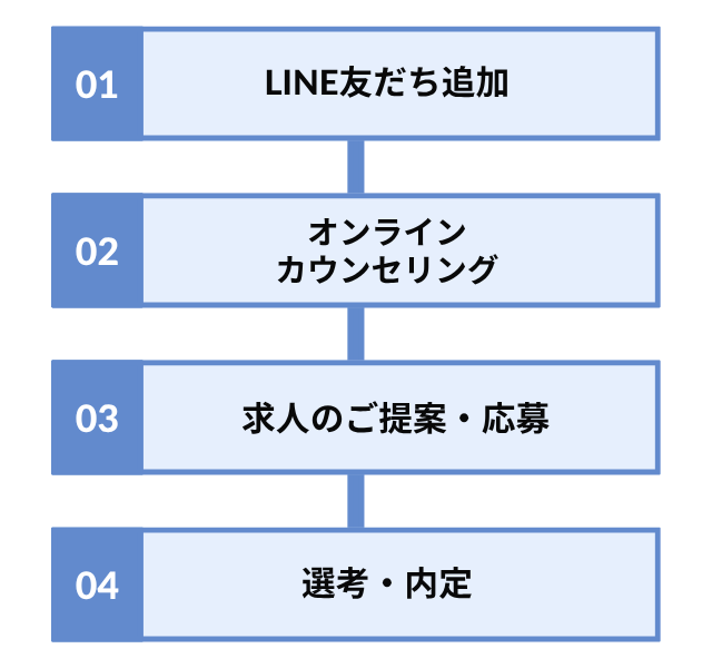 日々忙しい求職者さまに、できるだけ細やかなご支援ができるよう、LINE、オンラインミーティング、電話でご支援させていただきます。